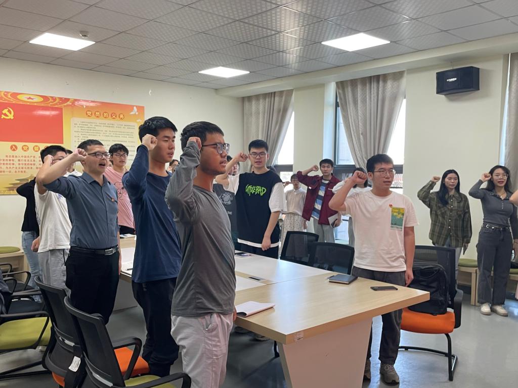 会议伊始,组织委员习小杰同志带领全体党员重温入党誓词。随后,姜月兴同志对本月党费交纳情况进行了说明。紧接着,在黄天宇同志的带领下集体诵读学习《中国共产党章程》第八章“党的纪律检查机关”相关内容。在讲授微党课推进中国式现代化需要处理好的重大关系时,孔梦佳同志详细讲述了顶层设计与实践探索的关系、战略与策略的关系、守正与创新的关系、效率与公平的关系、活力与秩序的关系、自立自强与对外开放的关系等六个方面的内容。