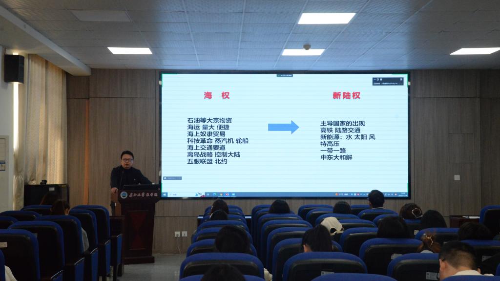 会议伊始,党委副书记尹小华对与会人员表示欢迎。随后,尹书记以航海大发现为切入点,从海权、新陆权、工业之维、科技之维、金融之维、军事之维、文明之维等多个方面深刻阐释了“百年未有之大变局”内涵。在培训中,尹书记以更易于学员理解的传统木桶理论将党的理论与“百年未有之大变局”相结合。