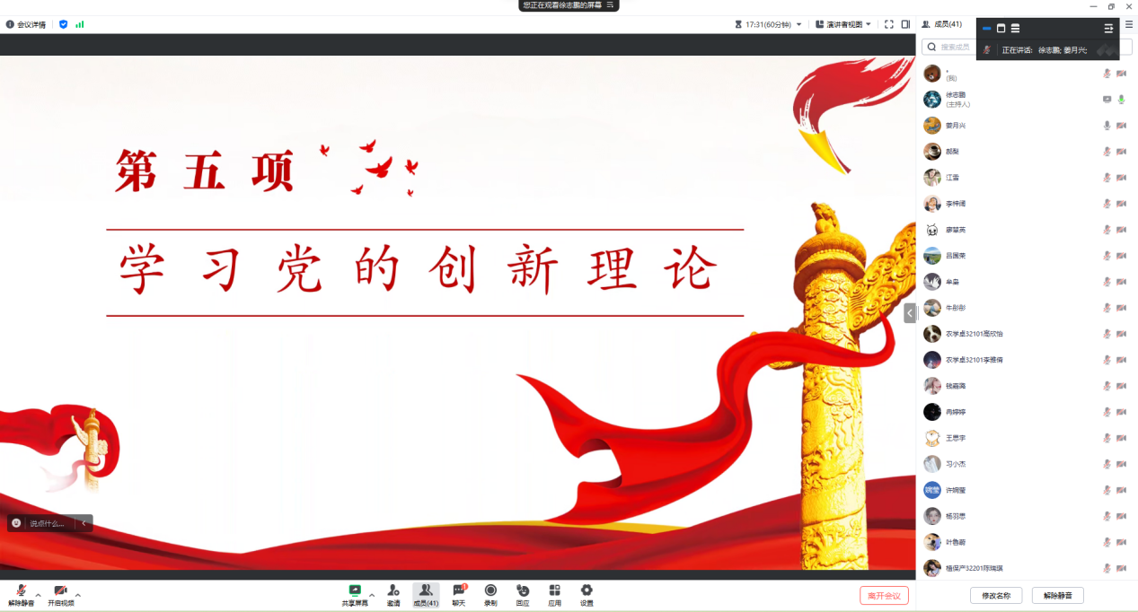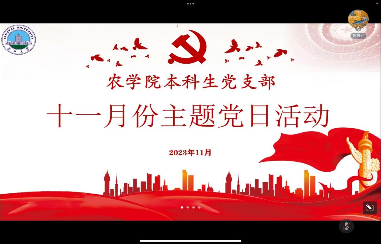 (通讯员 徐志鹏)11月27日18:00,滚球app官网本科生党支部在腾讯会议开展十一月主题党日活动,支部党员应到44人,实到44人,本次活动由支部党员徐志鹏同志主持。