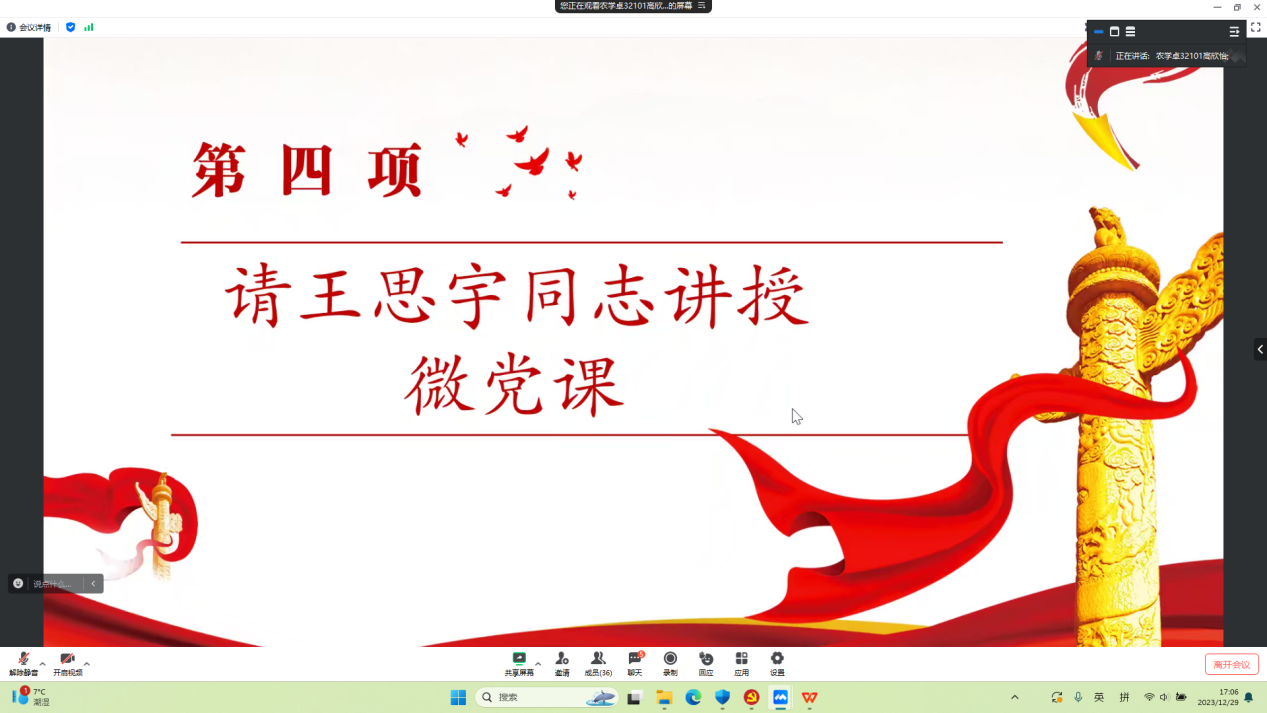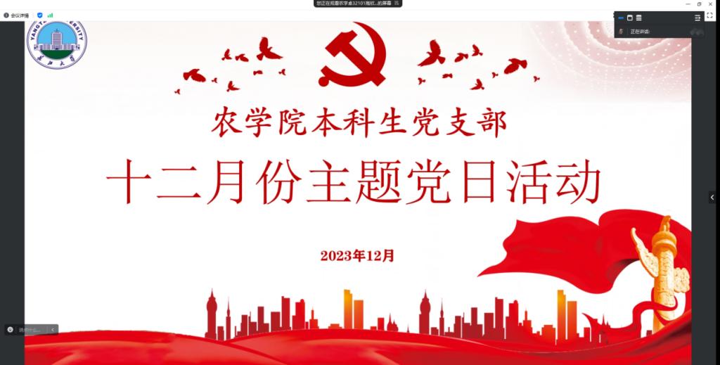 (通讯员 徐志鹏)12月29日晚上17:00,滚球app官网本科生党支部在腾讯会议开展十二月主题党日活动,支部党员应到44人,实到44人,本次活动由支部党员姜月兴同志主持。