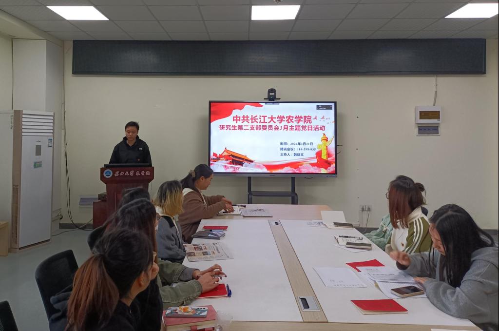 (通讯员 宋梦圆)2024年3月21日,滚球app官网研究生第二党支部在农科大楼3071开展三月份主题党日活动,活动结合腾讯会议(ID:114 598 035)的方式同时在线上召开。全体在校党员和校外联培党员共同参与,活动由韩晓文同志主持。