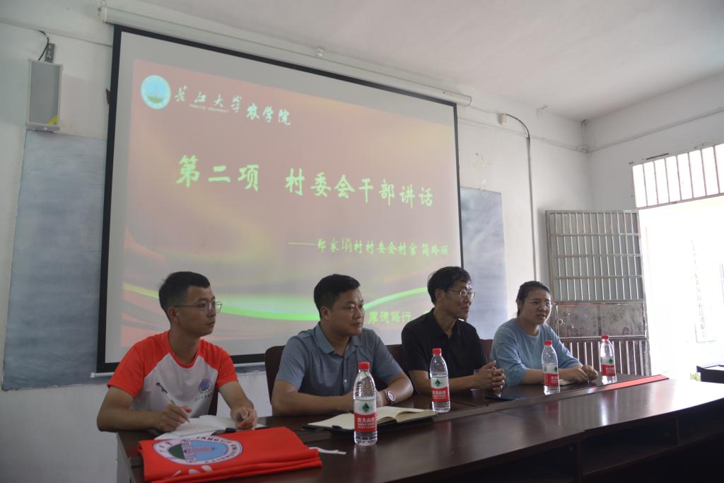在仪式上,董辉老师和往年参加过暑期三下乡的老实践队员也为乡村振兴实践队员传经送宝。董老师主调“主动”二字,主动交流、主动帮忙,做一个懂事的、高情商的大学生。老实践队员何泉龙和苏杭分享了与村民的交流方式,不要刻意的以一个实践队队员的身份去问问题,要学会放低姿态,拉近距离,真正的走进群众心中。