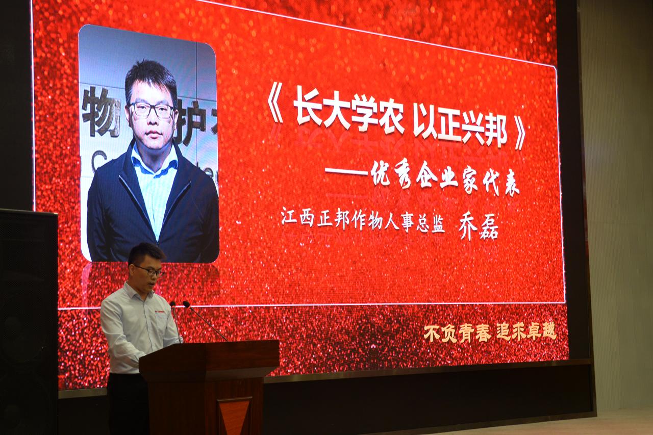正规滚球app平台官网战略合作企业优秀代表、江西正邦作物人事总监乔磊同志结合自身成长经历,畅谈了学农路上的欢笑与泪水。他勉励现场新生:“青春因磨砺而出彩,人生因奋斗而升华,新时代青年要将青春之花绽放在学农的道路上。”