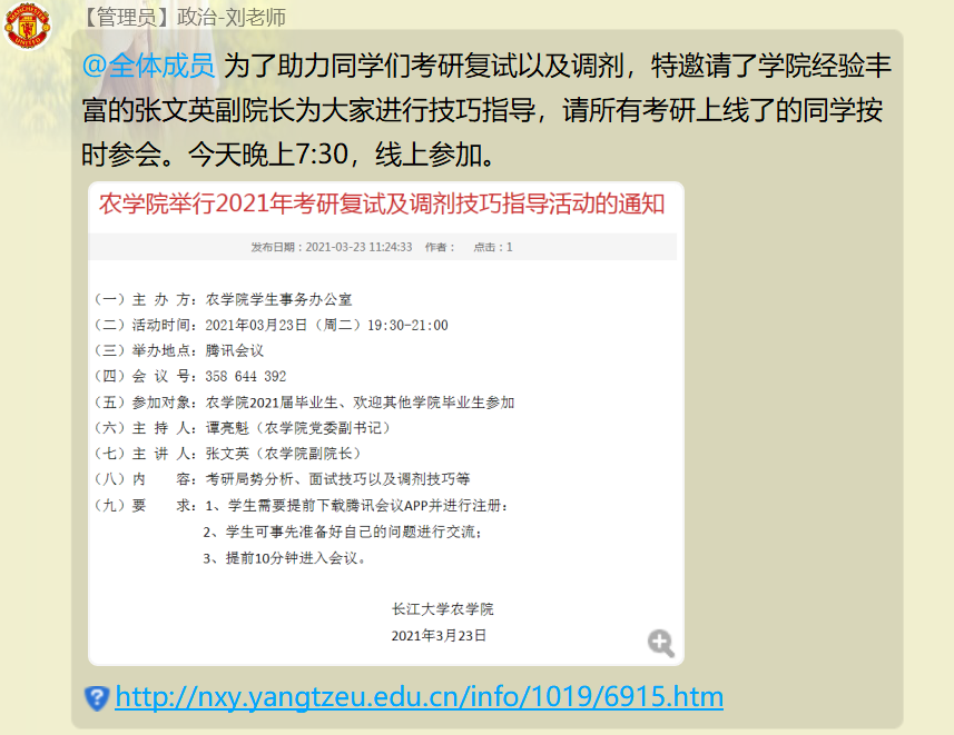 本次线上的会议的顺利召开,给了即将参加复试和服从调剂的同学更多的技巧与机会,不仅增强了考研学生的信心、鼓舞了考研学生的斗志,也缓解了考研学生的紧张与焦虑。