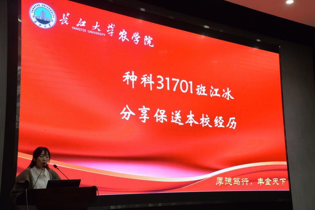 随后,由报考了西南大学的植保卓31701班余捷玲和保送本校的种科31701班江冰为同学们分享了学习方法和经验,余捷玲她鼓励正在考研路上艰难行走的人一定不要就此低头、轻言放弃,建议同学们在备战考研路上找一个研友相互鼓励,相互监督。江冰她希望同学们考研目标要明确,学习计划要可行,学习方法要得当,选择院校要切合自己实际。