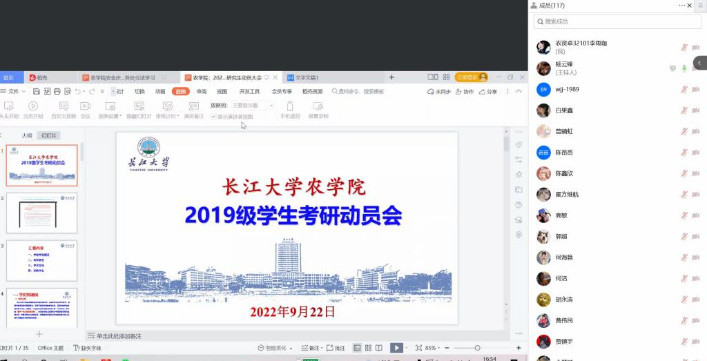 (通讯员 李雨珈)为使同学们更加了解报考研究生的细节,提高滚球app官网学生的报考率,鼓励有意向的同学报考研究生,9月23日,学院在腾讯会议召开2023届毕业生考研动员大会。会议由学工办主任杨云锋主持,研究生杨姝祺、部分2023届毕业生参加此次会议。