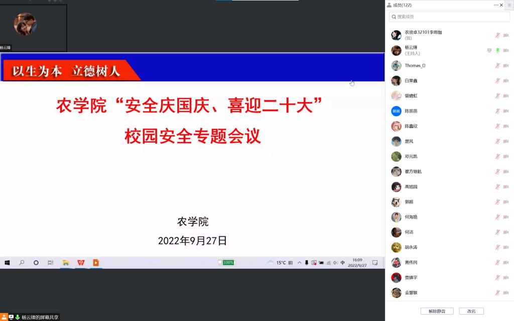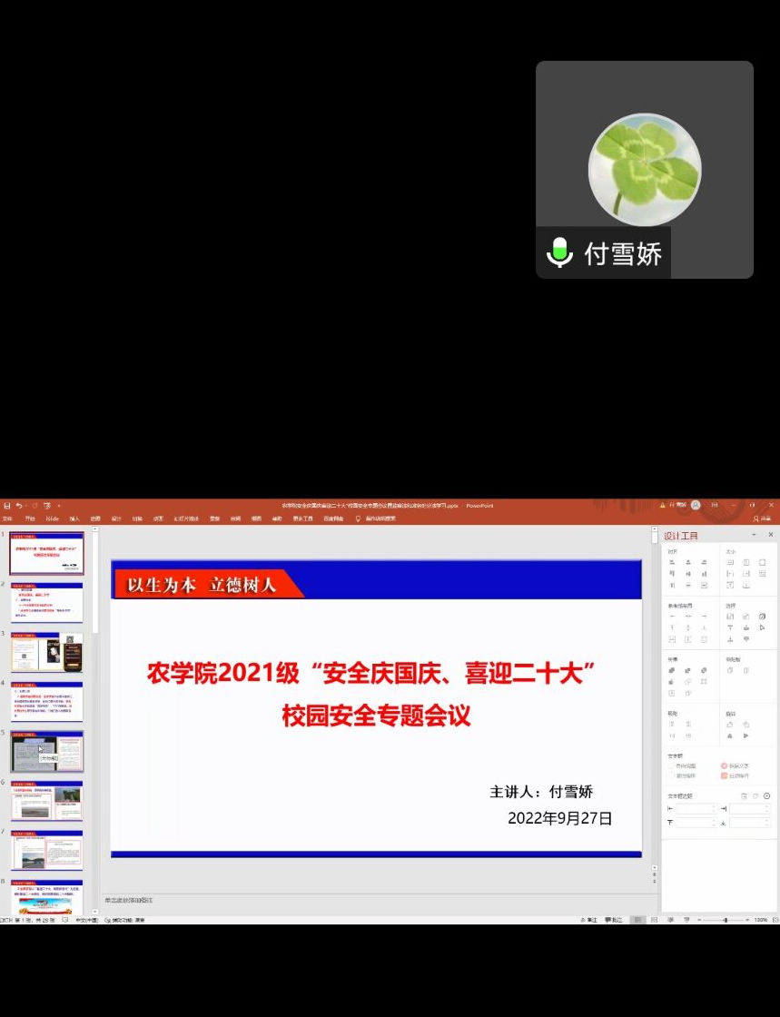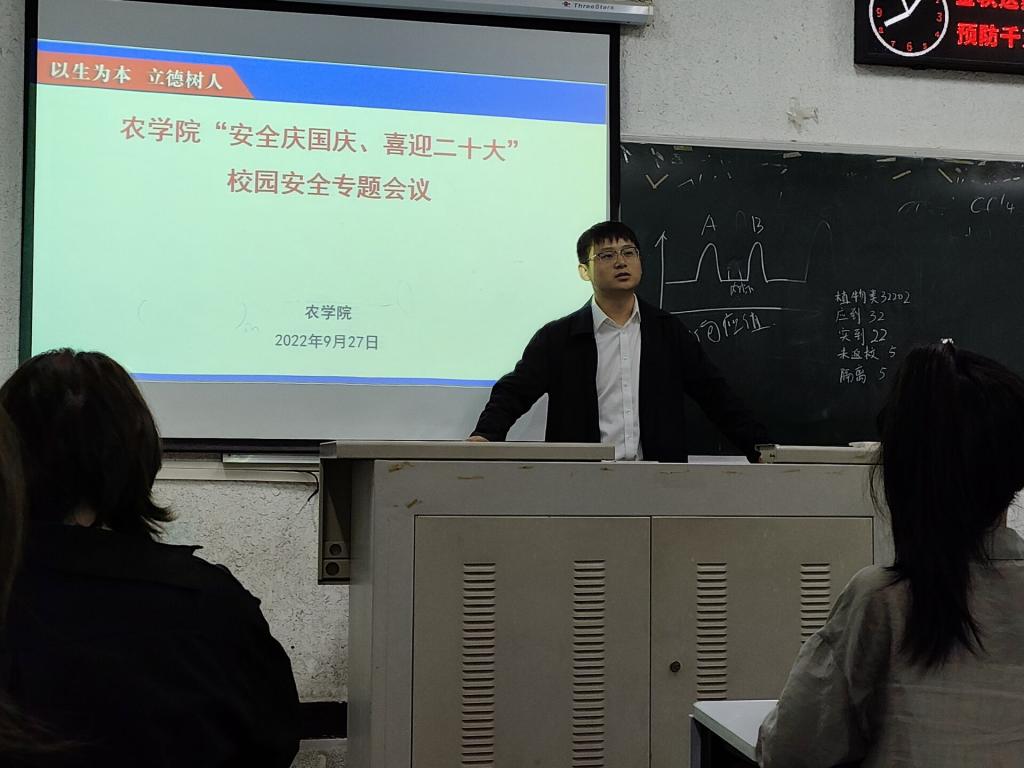 (通讯员 李雨珈)为提高学生的安全意识,增强学生对安全隐患的认知,加强学生的自我保护能力,砥砺奋进喜迎二十大,国庆临近之时,9月27日下午,学院分年级分班级召开“安全庆国庆、喜迎二十大”校园安全专题会议。
