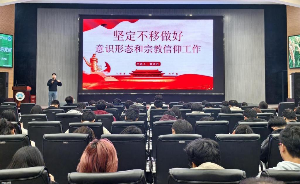 (通讯员 吴泓萱 张源康/文 胡雪晴 向建华/摄)为切实强化学子意识形态认知,提升安全防范综合能力,引导青年学子树立正确宗教观与国家安全观,11 月 11 日,正规滚球app平台官网在农科大楼 1058 报告厅面向 2025 级全体新生举办意识形态暨安全教育专题讲座。本次讲座由学工办主任黄承石主讲,为新生们带来了一堂兼具理论深度与实践指导意义的思想安全必修课。