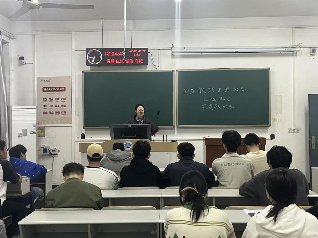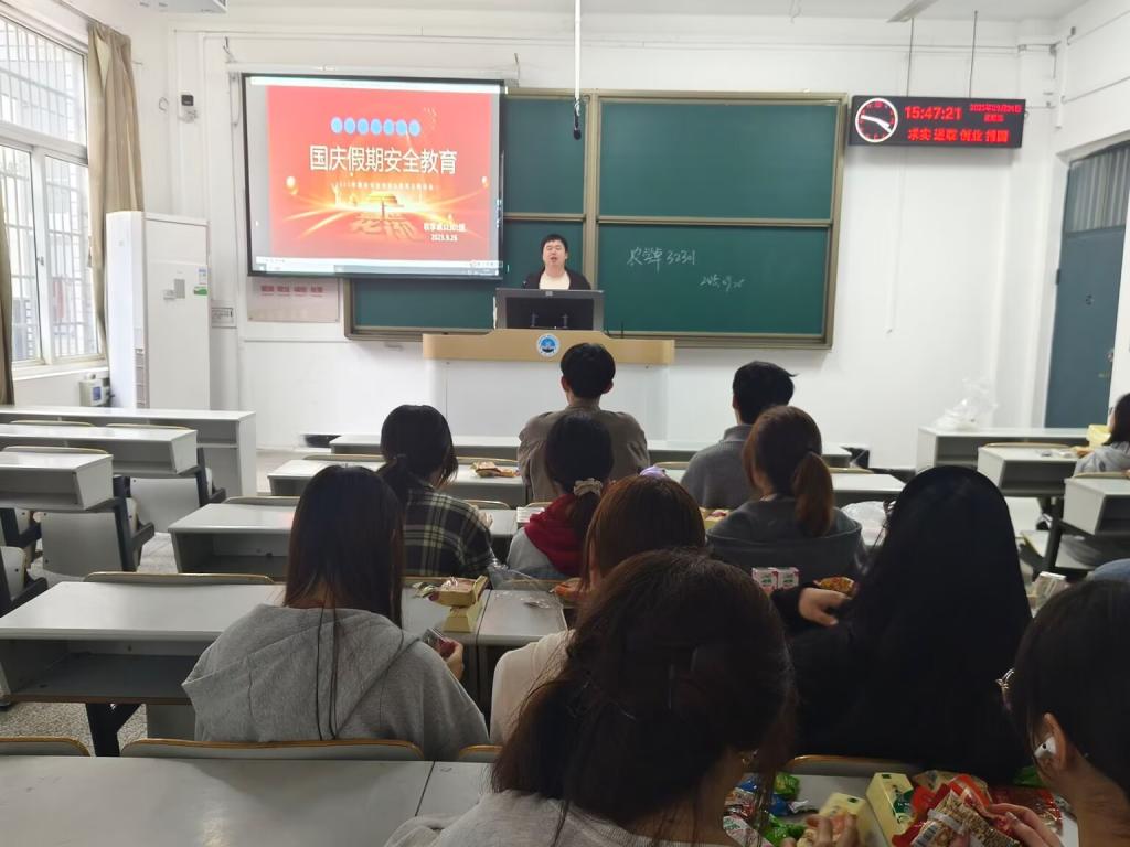 (通讯员 段文洁/文 张孝艺/摄)为切实增强大学生安全防范意识,确保国庆假期期间人身与财产安全,9月25-28日,正规滚球app平台官网全体研究生、本科生陆续召开“国庆假期安全教育”主题班会。班会由班主任主持,全体同学参加。
