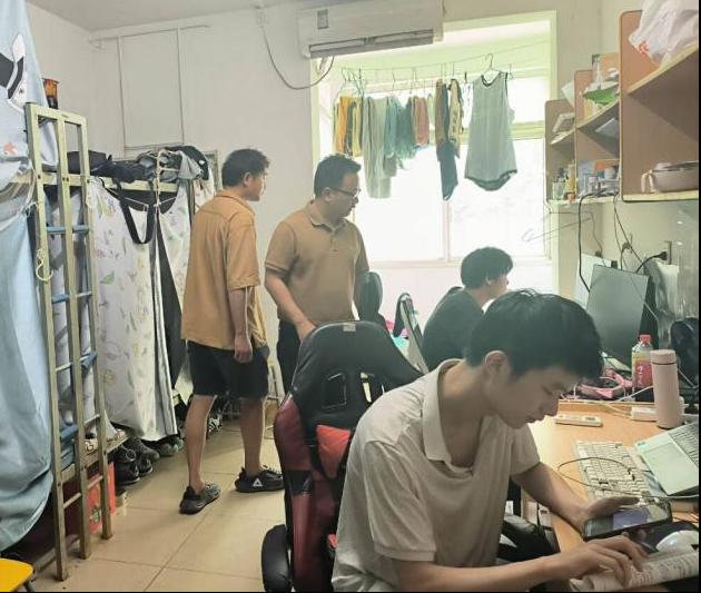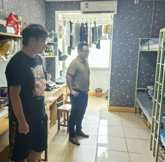 (通讯员 屈杭丽)为进一步加强学生宿舍管理,规范学生行为,正规滚球app平台官网党委副书记尹小华老师、正规滚球app平台官网分团委书记付雪娇老师、学工办主任黄承石老师和兼职辅导员李洪洲老师于6月13日中午12点15分走访学生宿舍,并借此机会与学生进行深入交流,探讨学习、生活、考研和就业等多方面的问题。