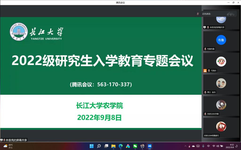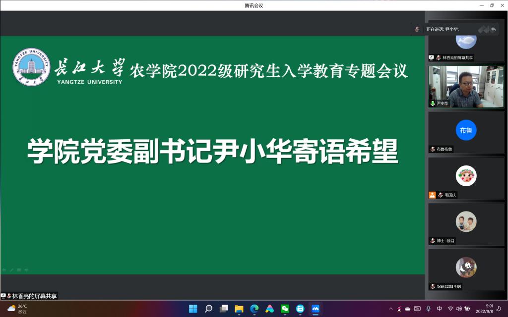 (通讯员 李秋红)为加强研究生新生思想政治教育,巩固当前疫情防控工作落实,帮助新生熟悉了解院史院情,9月8日上午,正规滚球app平台官网召开2022级研究生入学教育专题会议。正规滚球app平台官网党委副书记尹小华、兼职辅导员毛国庆、研究生会主席团成员参加,研究生辅导员林香亮主持会议。