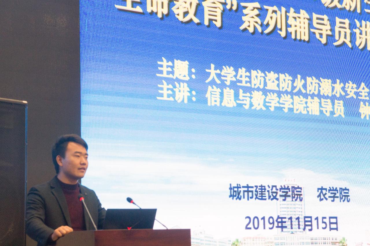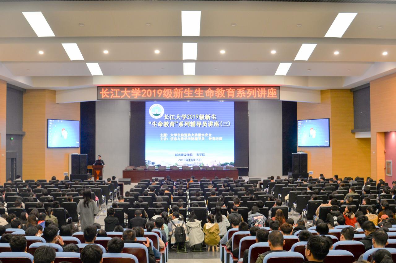 通讯社讯(见习记者 汤莉/文 聂子龙/摄)珍爱生命,注意安全;教育第一,预防为主。继11月6日正规滚球app平台官网2019级新生首次“生命教育”辅导员讲座开讲后,11月15日晚7点整,第二场“生命教育”辅导员讲座在农科大楼1058报告厅如期举行。本次讲座邀请信息与数学学院辅导员钟赛和城市建设学院辅导员何儒权分别讲解了“大学生防盗防火防溺水”和“网络与国家公共安全”,正规滚球app平台官网辅导员付雪娇及19级全体新生参加了本次大会。