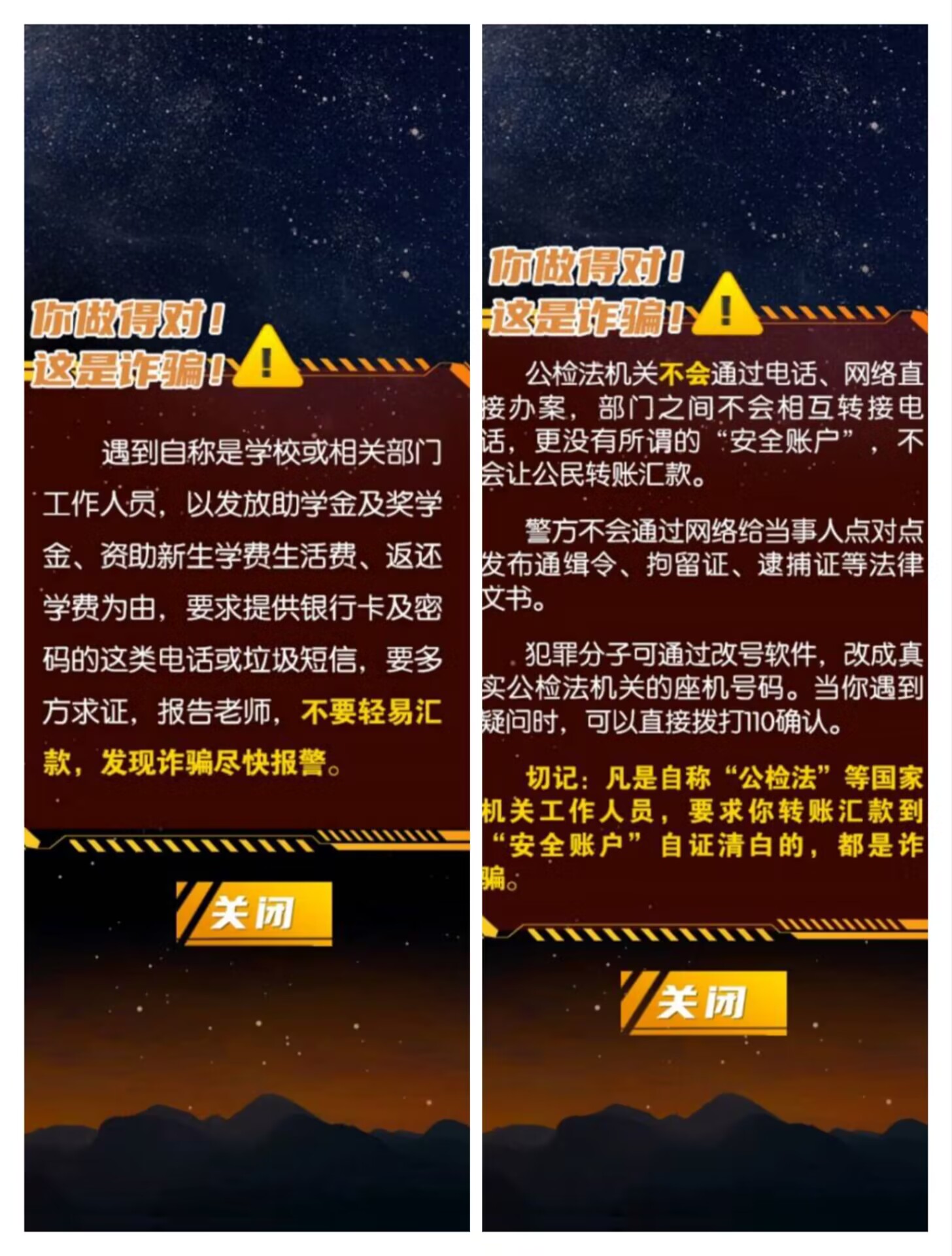 正规滚球app平台官网全体同学都关注了“湖北日报”微信公众号,并且进行了为时五分钟的“防电诈”沉浸式课程的学习。接通虚拟诈骗电话的形式,让大家明白了该如何去应对电信诈骗,以及该如何保护自己的个人信息。